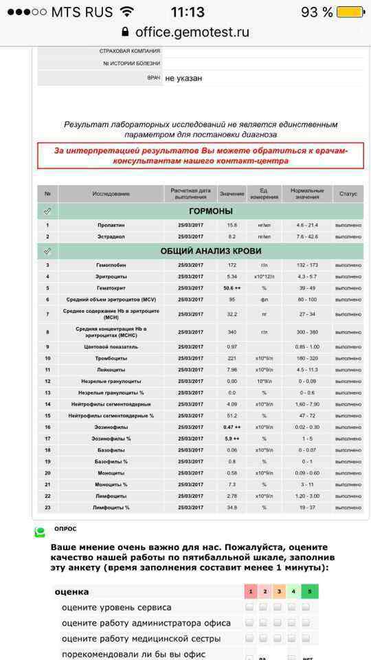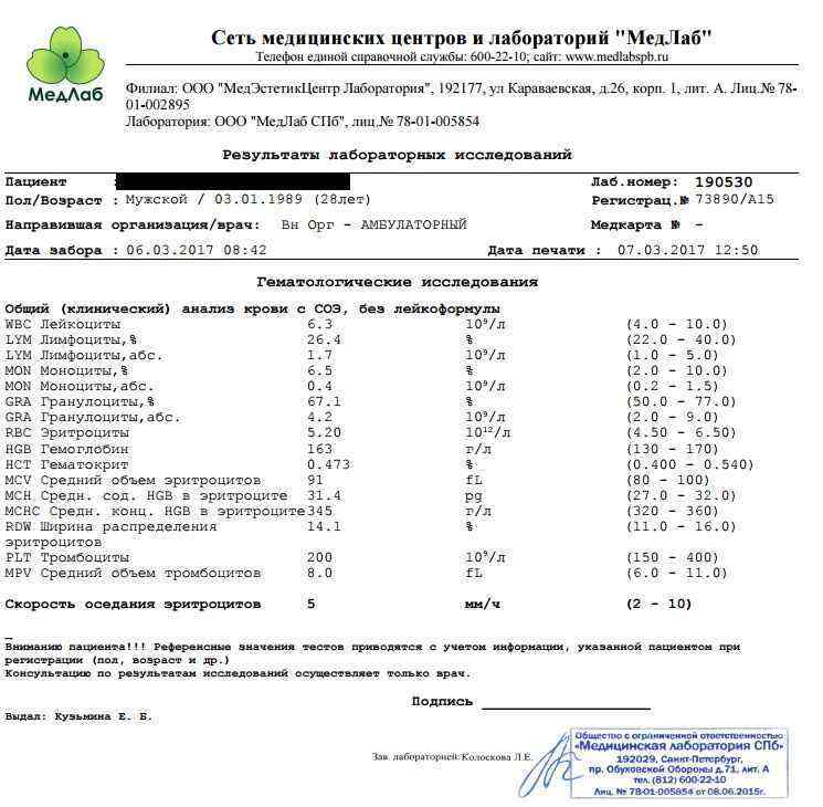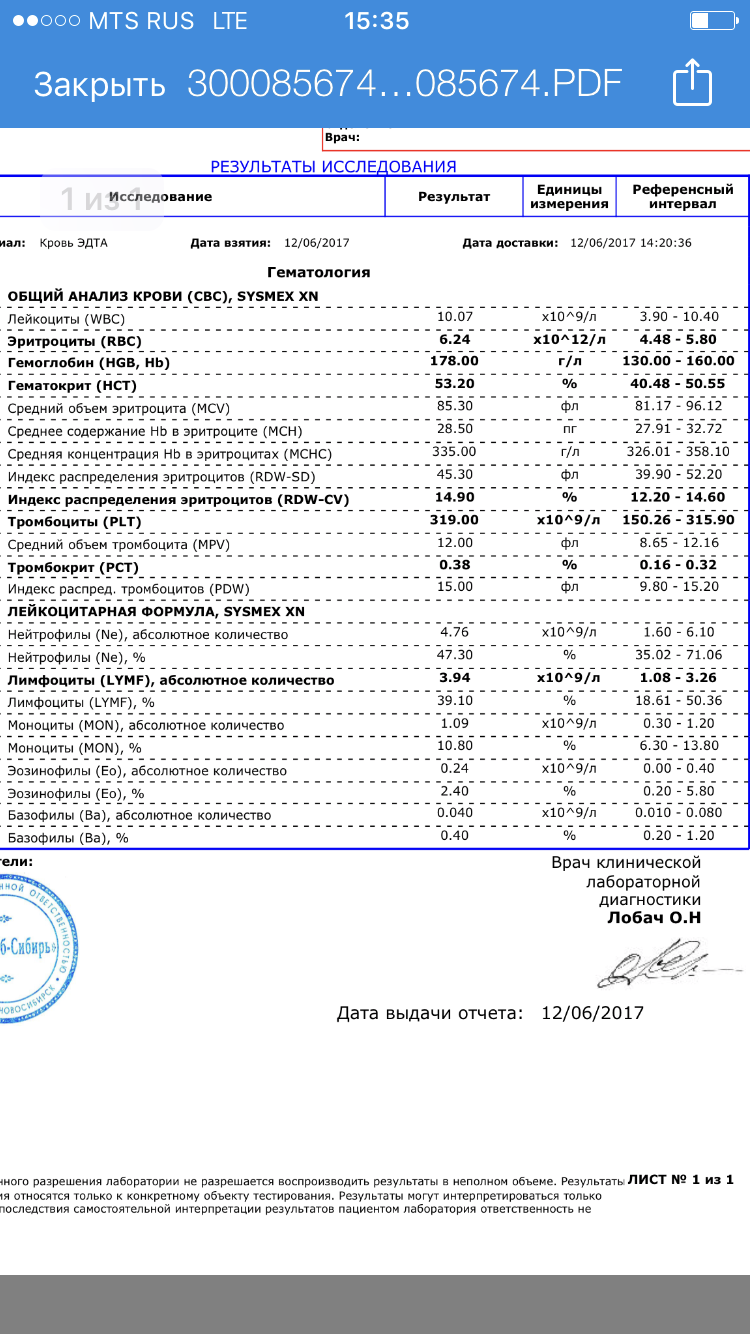 Анализ сдан по всем канонам.