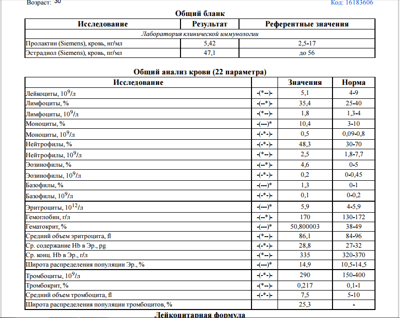Пролактин 163 мед/л73 - 407 мЕд/л