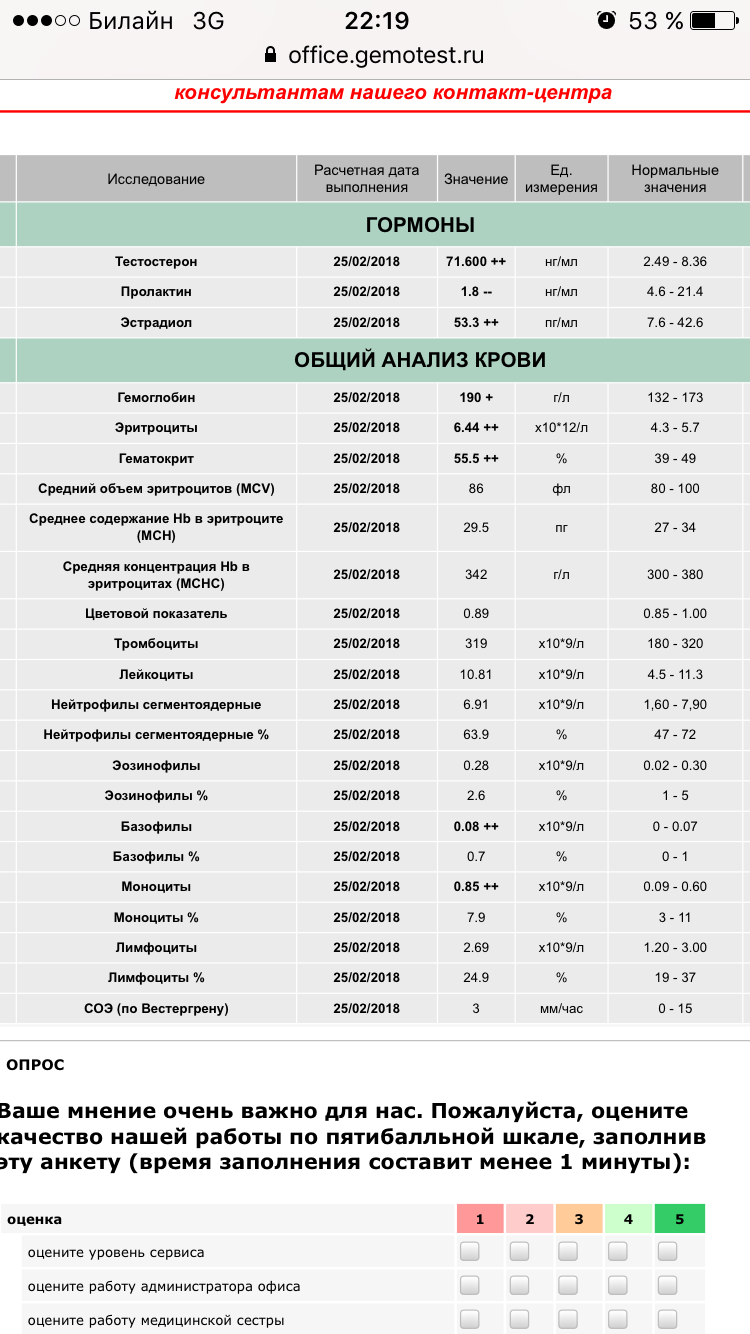Скину свои анализы. Курс уже идет длинной 18 недель. Тест энантат ставится по 750 в неделю + болд Унд. 1000 в неделю+ трен энантат 400 в нед (10 недель всего).